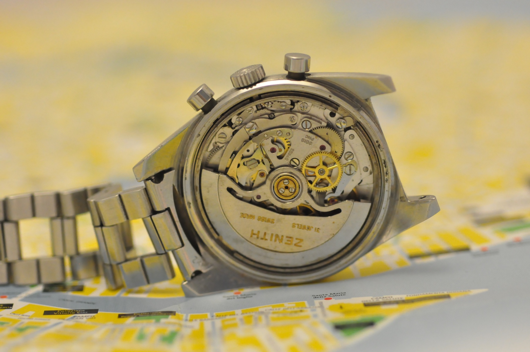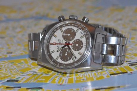 Zenith "El Primero" Chronografo acciaio prodotto negli anni '70, con raro quadrante con contatori virato marrone. Cassa acciaio, quadrante argento, movimento automatico.